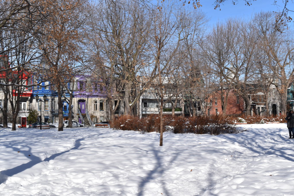 Dans Montréal, il y a plusieurs arrondissements, comme Ville-Marie, Outremont, la Petite Italie ou le Plateau. Ce dernier est particulièrement connu et apprécié des Français qui en ont fait leur repaire. Ainsi la première question d’un Montréalais à un Français est souvent « Habites-tu sur le Plateau ». Notre appartement se trouve exactement à la limite entre le Plateau et Downtown, aussi je vous propose une petite ballade dans les parcs et les rues du Plateau. Sortez les bonnets et les gants, il fait -14°C ce matin.