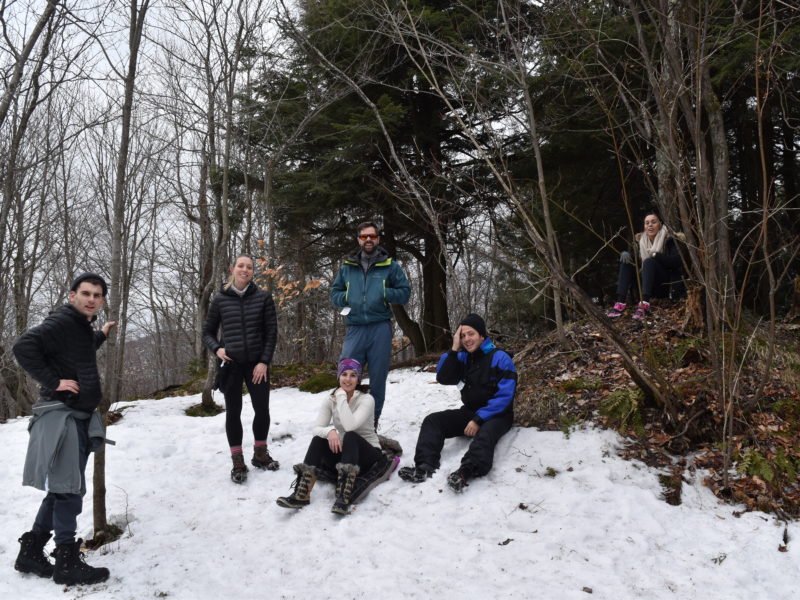 Le soleil s’est levé le premier. Il faut tout d’abord préparer le déjeuner pendant que les autres se réveillent doucement. Quinze bols, un kilogramme de yaourt, autant de céréales, des pommes, des fraises, des bananes et du miel. Ensuite, le café, le thé, le chocolat, presser les oranges et finalement, les toasts. Au fond, tout est question d’organisation. À première vue, nous avions fait un sans faute, mais les premières grimaces apparaissent: nous n’avons pas acheté de beurre d’arachide ni de margarine. Voilà ce qui se passe quand on confie les courses à des Français ! La neige n’est pas bonne ce matin, les pistes sont verglassées, nous allons donc chausser les crampons et partir marcher dans le Parc National du Mont Orford.