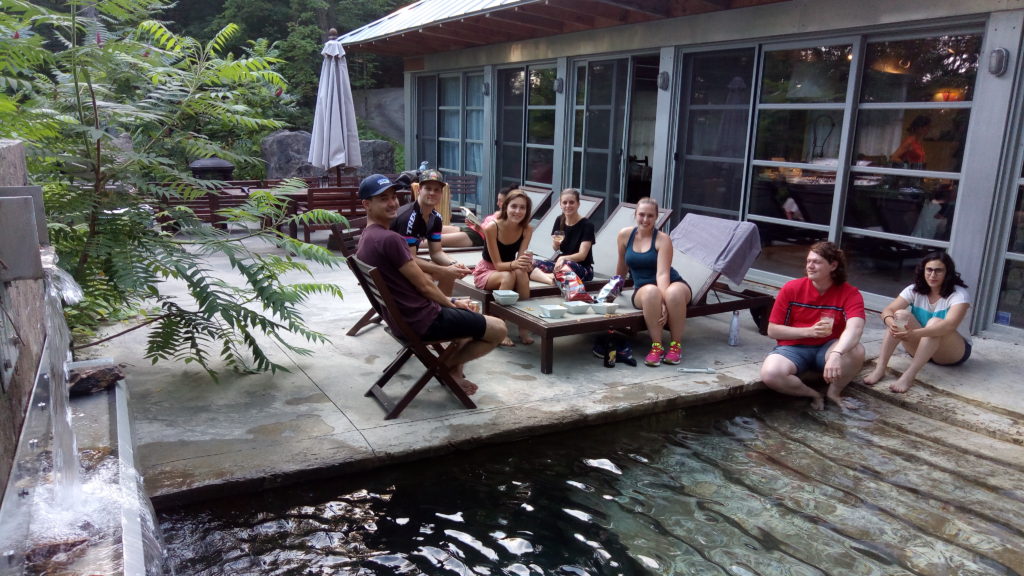 Les plus fidèles d’entre vous s’en souviennent peut-être, mes collègues m’avaient invité durant l’hiver au chalet. Le principe est simple. Environ quinze personnes se retrouvent au bord d’un lac ou d’une forêt pour manger, boire et faire du sport. Cet été, nous n’avons pas dérogé aux traditions. Nous avons parcouru 50 kilomètres de vélo avec le lot de montées. Le samedi soir, 14 juillet oblige, les quatre français étaient chargés de faire découvrir le patrimoine culinaire du vieux continent aux Québecois. Nous avons préparé magret de canard, quiche lorraine, ratatouille et autres spécialités avec amour et fierté nationale.