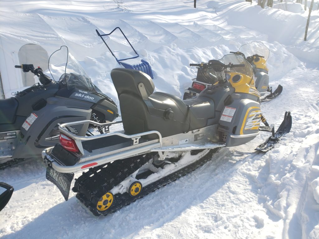 De mon côté, je m’amuse pas mal à tenter des dérapages sur le lac, à soulever de la neige. Du coup, ce qui devait arriver, arriva et je me suis planté dans un gros tas de neige au ralenti. Plus sérieusement, une fois accepté le bruit agaçant du moteur, c’est extrêmement grisant. On peut aller partout dans la neige, sur les lacs glacés ou bien dans les bois.