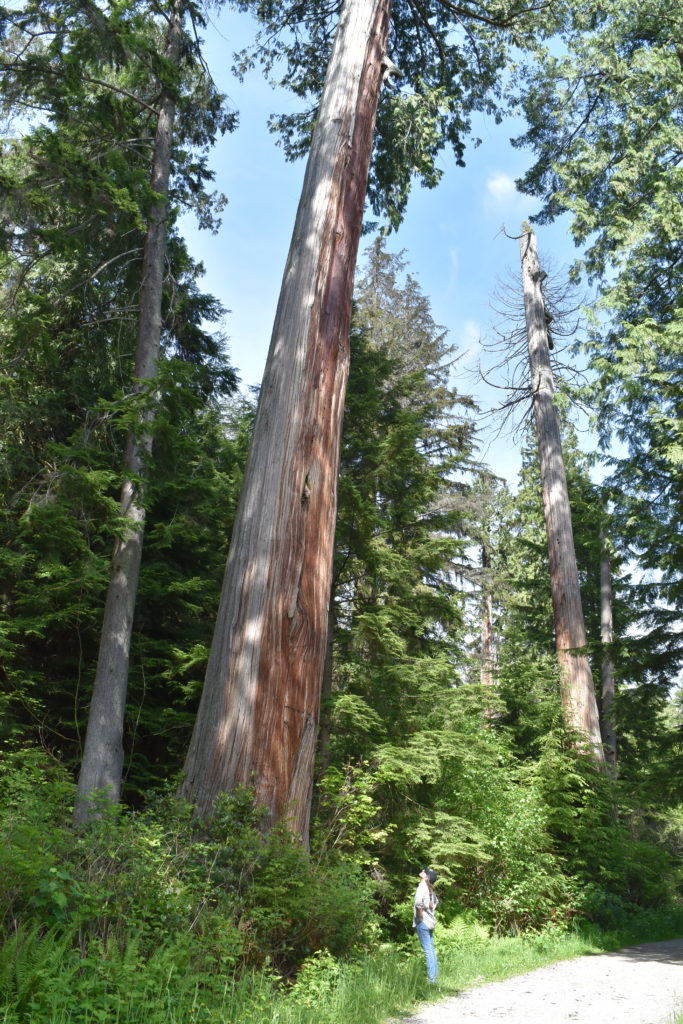Le deuxième jours est consacré à la visite du Stanley Park, situé au bout de la presqu’île. D’un coup, on quitte le béton et les marinas pour se retrouver paisiblement dans une forêt de pins et de séquoias. Tout devient beaucoup plus calme. La balade que nous faisons à vélo longe l’océan et donne une très belle vue sur les massifs de montagnes qui encadrent la ville. Avec le petit soleil du matin, c’est très beau.