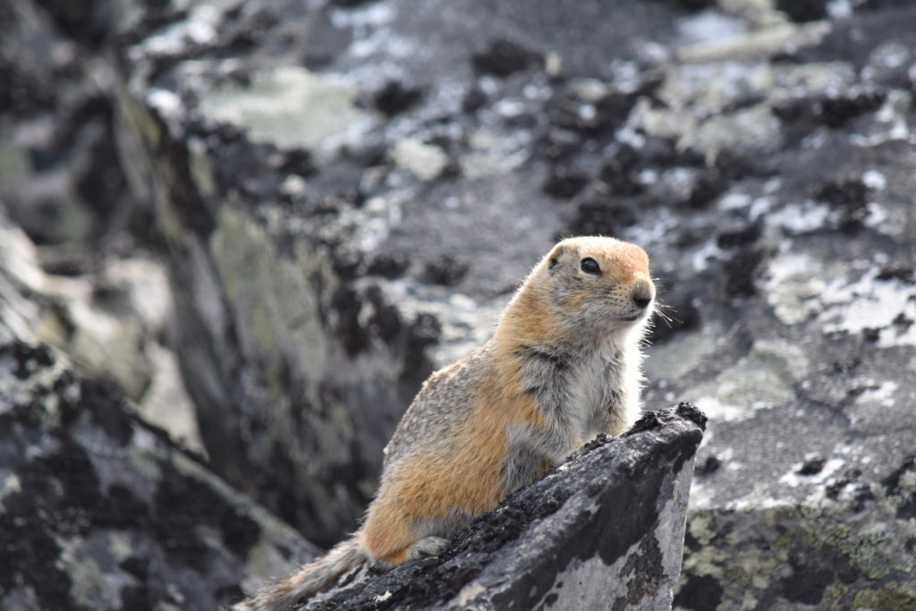 Arrivés au sommet, la vue sur la vallée est époustouflante. Nous sommes accueillis par de jolies petites marmottes, pas très farouches. Sur le chemin de la descente, nous rencontrons d’autres randonneurs qui nous indiquent un peu retournés avoir vu un grizzli qui mangeait sur le bord de la route. En reprenant le van, nous allons à l’endroit indiqué, mais nulle trace de l’animal. Un peu déçu de jouer à cache-cache avec les ours dans la région où ils sont sensés être plus nombreux que les humains (8 000 grizzlis, 60 000 ours noirs et seulement 38 000 habitants).