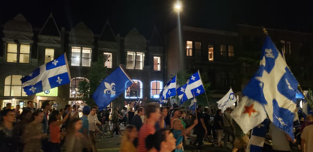 Renseignement pris auprès de nos collègues et amis québécois, la fête nationale se célèbre en famille, autour d’un barbecue au chalet, mais pas vraiment en ville. Chou blanc donc.