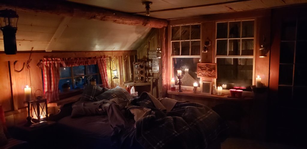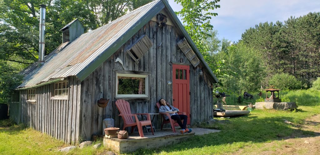 Notre chalet est une érablière, là où on transforme l’eau d’érable en sirop d’érable. Pas d’eau courante ni d’électricité, nous nous éclairons à la bougie et à la frontale. Le soir, les lucioles clignotent dans la forêt, c’est très beau. Évidemment, pas un bruit, juste le son au loin d’un feu d’artifice. C’est vrai, c’est la fête du Canada.