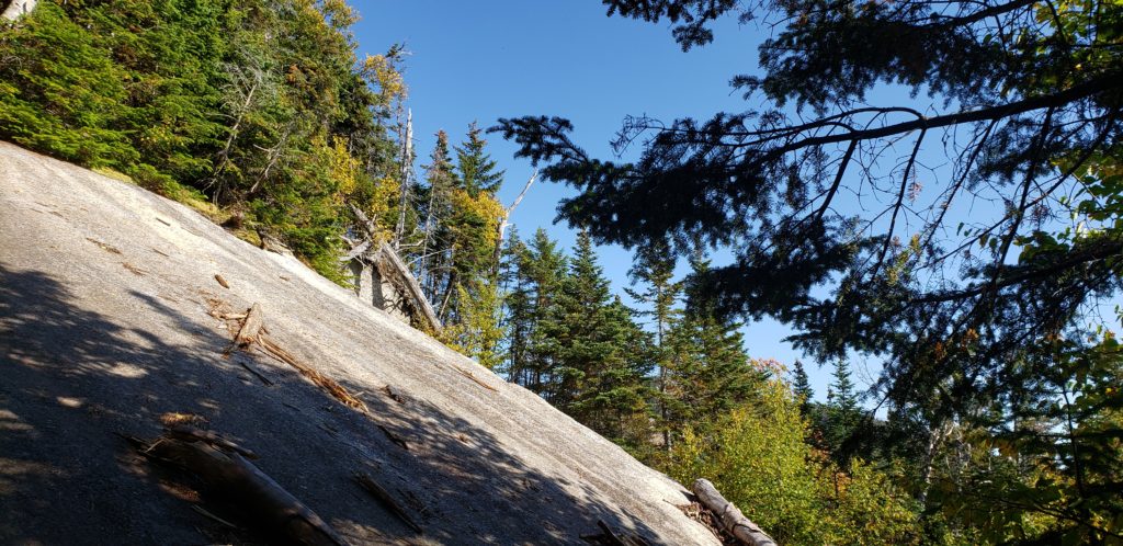 À un moment, il faut bien se rendre à l’évidence, la randonnée ressemblera plus à de l’escalade par moment qu’une simple marche dans les bois. Les arbres denses fournissent des racines bien utiles pour trouver un appuis, une prise. Parfois, la roche lisse ne laisse d’autre choix que de se mettre à quatre pattes.