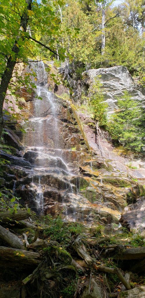 Nous redescendons rapidement et croisons de grands malades qui font le trajet en courant et sautant d’une roche à l’autre. Un peu fourbu, nous rentrons à Montréal, mais les Adirondacks nous offre une dernière petite surprise: une cascade dissimulée parmi les érables. Nous reprenons la route contents.