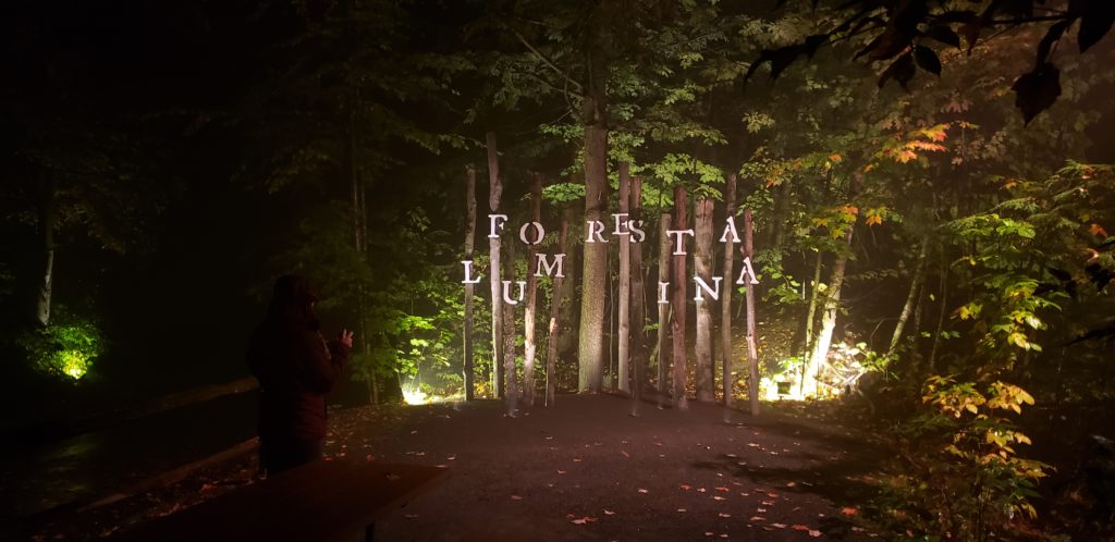 La même équipe d’artiste a créé un autre spectacle dans la forêt: Foresta Lumina. On déambule parmis les arbres d’un tableau lumineux à un autre dans la pénombre de la nuit.