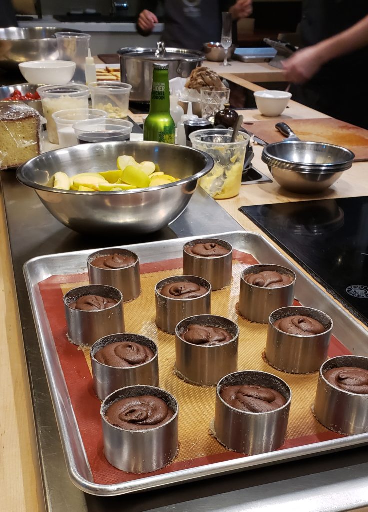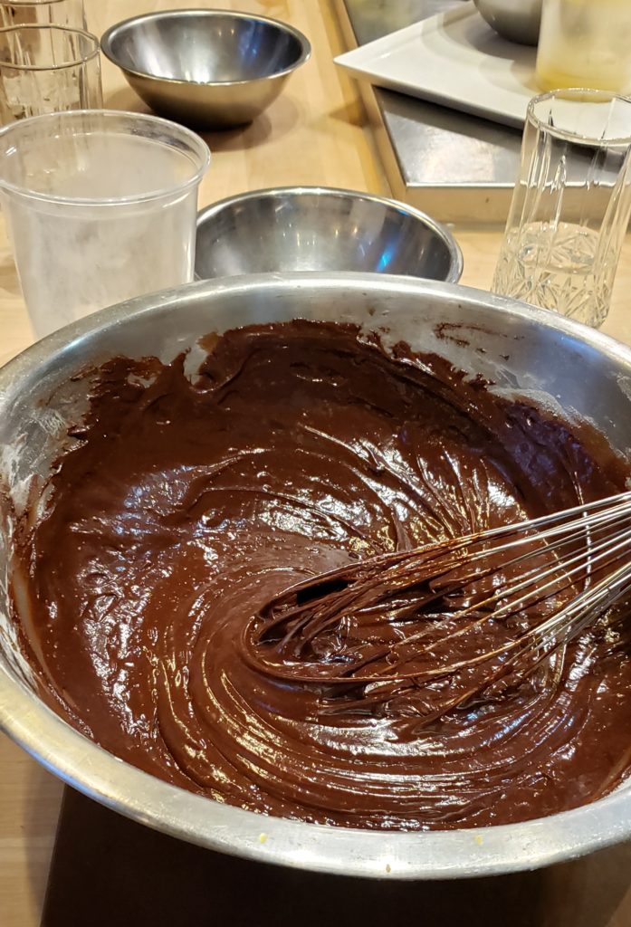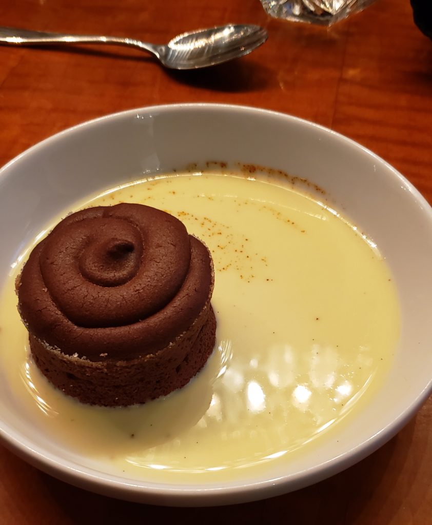 – Moelleux au chocolat au coeur de chocolat blanc, crème anglaise.