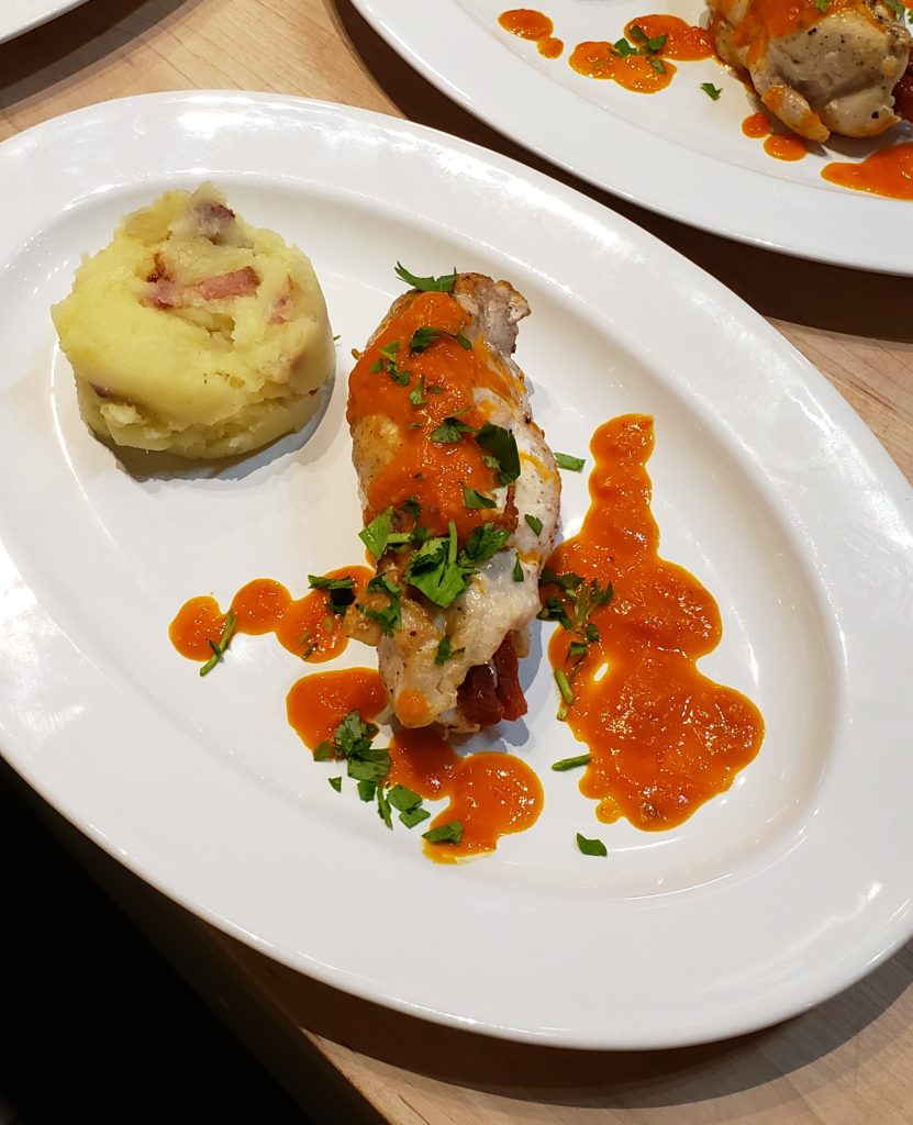 – Papillotte de poulet garni au choriso, purée de patate au lard