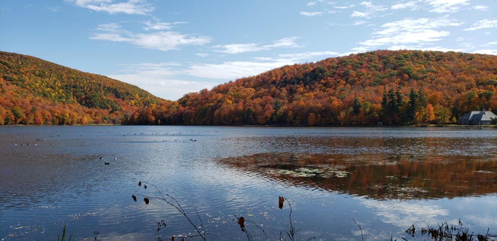 Pour les Canadiens, il s’agissait de la fin de semaine de l’Action de Grâce, autrement appelée Thanksgiving. Les Américains le fêteront plus tard, à la fin octobre. Il y avait donc beaucoup de monde sur les sentiers et sur le stationnement. La température étant idéale, nous avons pu profiter encore et toujours des couleurs de l’automne dont voici un petit florilège.