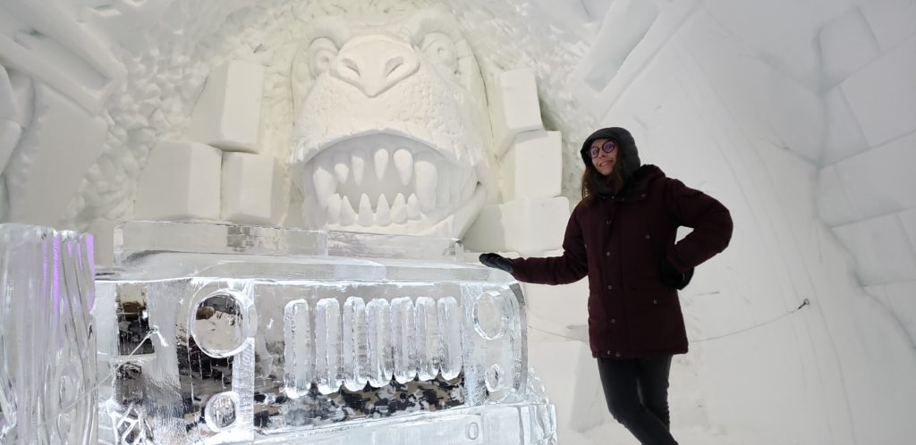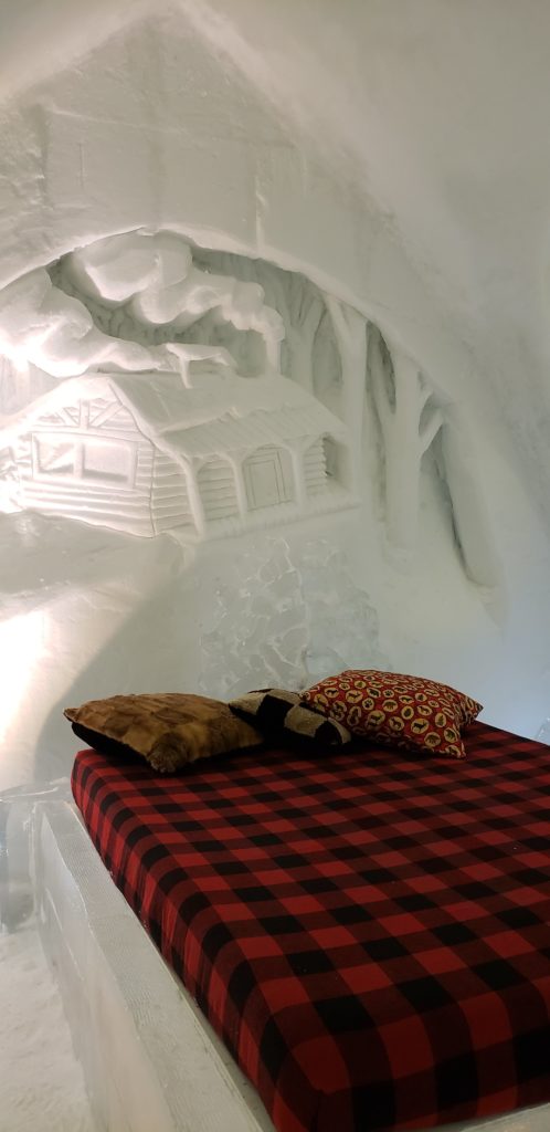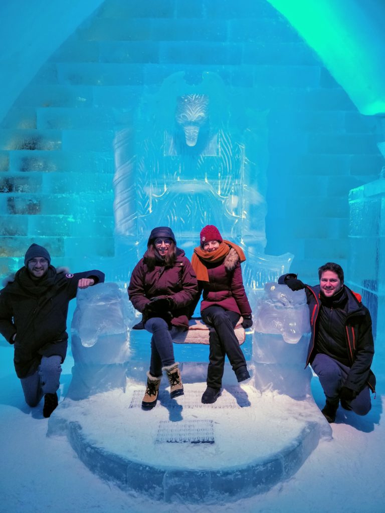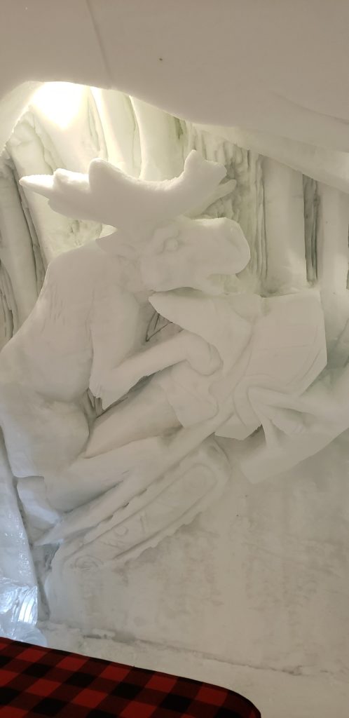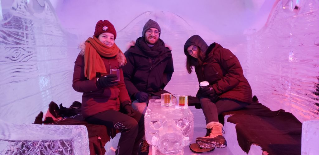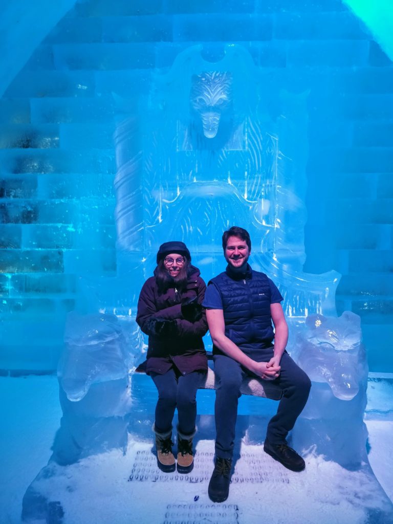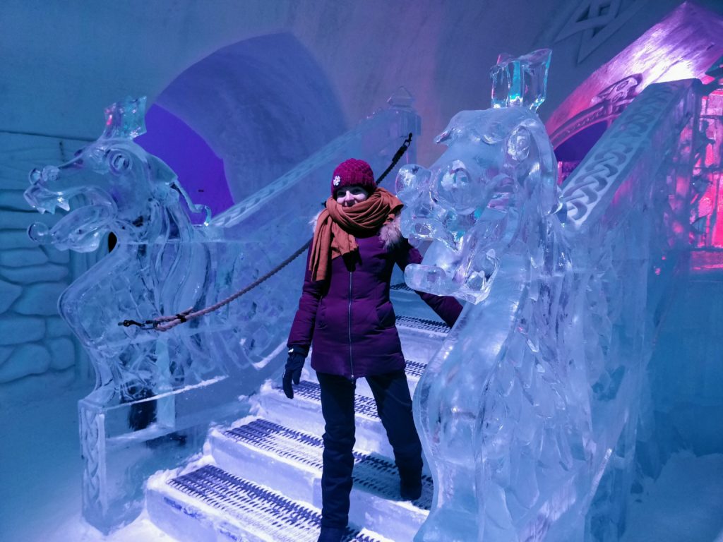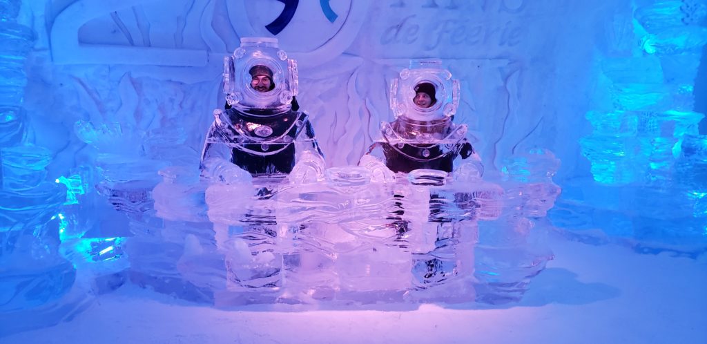 Afin de toujours respecter cette maxime « parce qu’on peut » ou « parce que pourquoi pas », le Québec déborde de bonnes idées. Comme vous le savez sans doute, les Inuits avaient l’habitude de se créer des refuges pour l’hiver, les igloos. Comme les canadiens aimaient bien le concept, ils se sont lancés dans le projet de créer non pas un gros igloo, mais bien un hôtel au complet. Bruno et Maud nous emmènent donc dans ce lieu étrange, décoré par des sculpteurs sur glace.