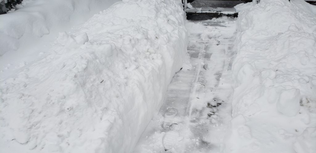 Vous le savez sans doute, on aime la neige. Et me concernant, j’aime aussi pelleter la neige. Sans doute le côté nécessaire, mais combat déjà perdu. À peine avoir terminé de nettoyer l’escalier que les flocons les recouvrent d’un manteau blanc. Le résultat est cependant très satisfaisant, lorsque les congères pour aller chez soit dépassent le mètre de neige tassée.