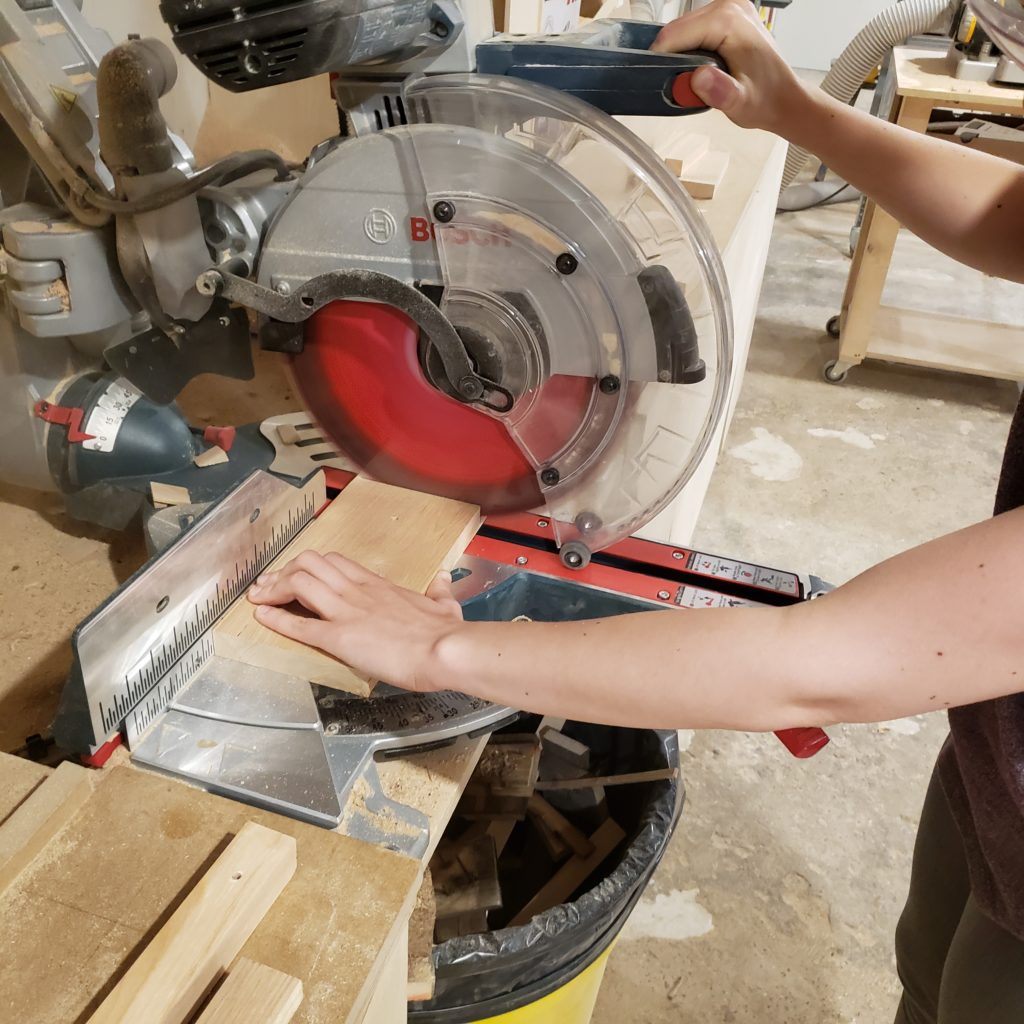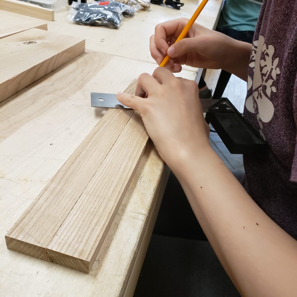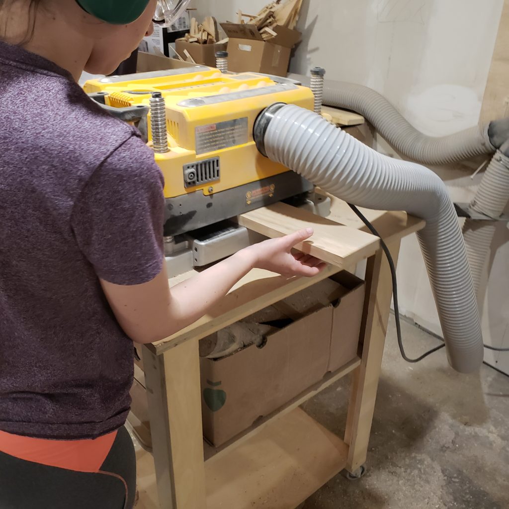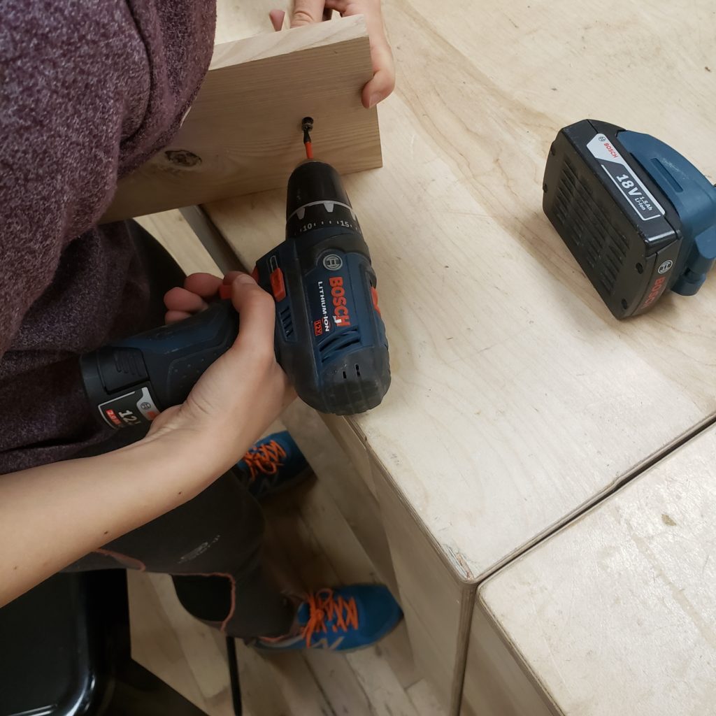 L’instructeur nous présente le matériel: du frêne, un câble électrique, trois vis une douille et une ampoule. On nous présente les machines pour découper, percer, aplanir et poncer.