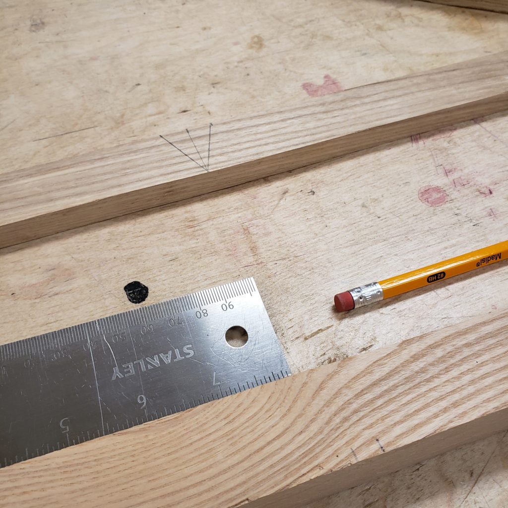 On prend les mesures. Pas très propre, mais vu qu’on ne maîtrise pas la scie … la coupe ne suivra sans doute jamais la ligne tracée.