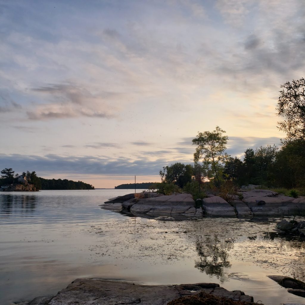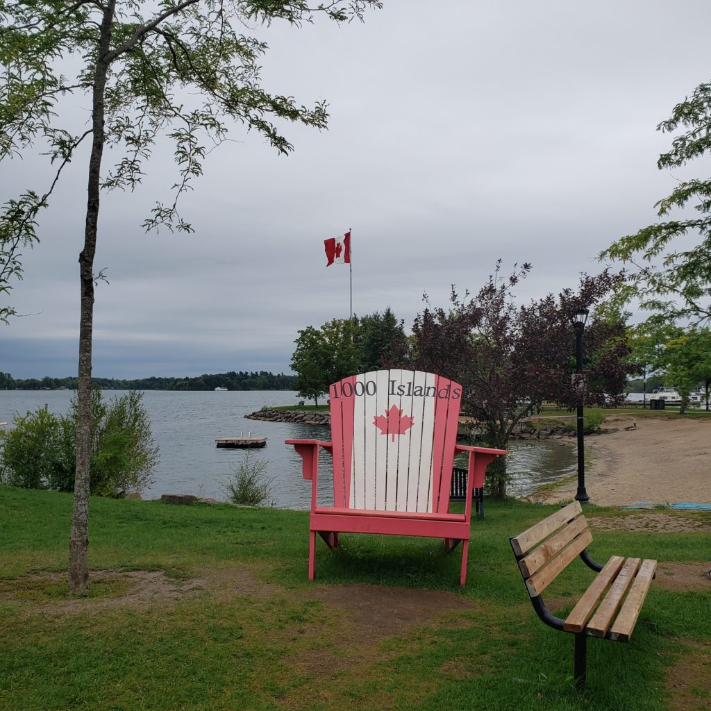 J’avais eu la chance de découvrir 1000 Islands avec les parents. La moitié des îles se trouvent côté U.S.A. et le reste, côté canadien. Nous prenons bien soin de ne pas traverser le fleuve, la frontière étant fermée pour cause de Covid non maîtrisée. Les îles se trouvent à la naissance du Saint-Laurent, lorsque les eaux quittent le lac Ontario.