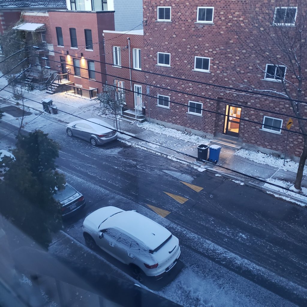 - Les premières neiges: entre les redoux et les chutes vertigineuses de température, quelques flocons viennent se déposer au sol. Dans les parcs, il ne reste plus que le vert des pins, le gris des troncs et un premier manteau blanc au sol. En ville, cela ne restera pas, en montagne, c’est le début de l’hiver qui commence. (un exemple ci-dessous).