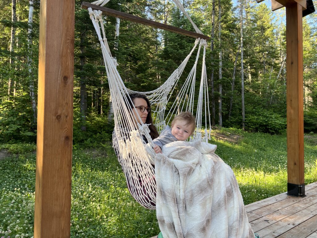 Vous allez sans doute rire, mais je n’étais jamais allée au chalet. Il s’agit d’un concept très complexe, qui consiste à quitter la ville pour te perdre dans les bois dans une maison en bois: un chalet. Bon, dit comme ça, ce n’est pas forcément attrayant. Ajoutez-y des lacs, des hamacs, une grande zone de jeu pour explorer et des balades en forêt, là tout de suite c’est pas mal, non ? Je suis même prête à faire un peu de route sans râler pour m’y rendre. C’est d’ailleurs comme cela que le voyage a commencé. Mes parents sont venus me chercher dans ce paradis qu’est la garderie et m’ont harnachée au fond du siège auto. Il faut quand même que je vous raconte que mon éducatrice m’a donné le titre de “Princesse de la garderie”, oui je suis la chouchou, la préférée. En même temps, ce n’est pas étonnant, je suis parfaite. Mon père me le répète: chouquette qui est parfaite, Adèle qui est trop belle. Oui, mon père n’est pas Baudelaire, mais on fait avec ce qu’on a.