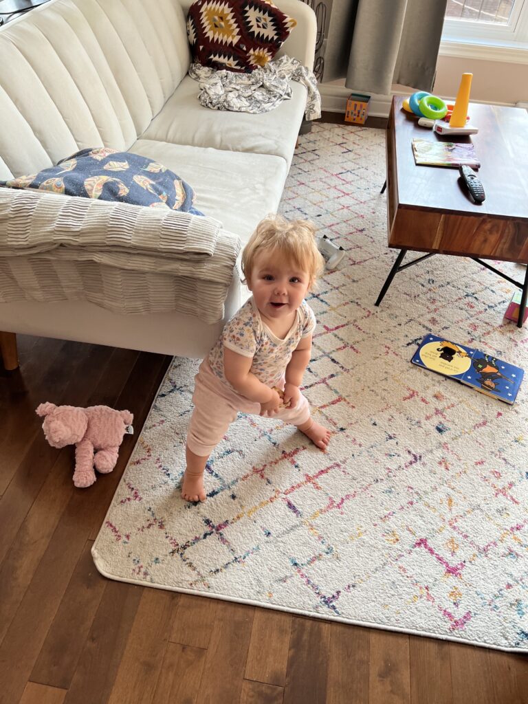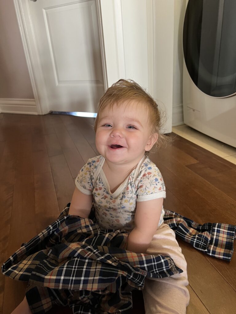 Par contre, d’autres dents poussent, et ça fait très mal. Je suis une femme forte et indépendante, donc je prends beaucoup sur moi, mais parfois, avec les prémolaires, j’apprécie un petit câlin de réconfort. D’ailleurs, ma grand-mère Aurore est venue à ma fête ! Elle s’occupe bien de moi, des câlins, le bain, le repas et elle me cajole dans la voiture. C’est bien d’avoir un autre adulte pour moi toute seule. On a fait des ballades dans la rue Wellington, on a fait les bords du Saint-Laurent à pied et en voiture (qui me berce super bien) … et ce n’est que le début !