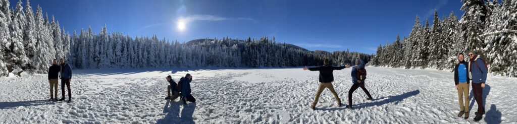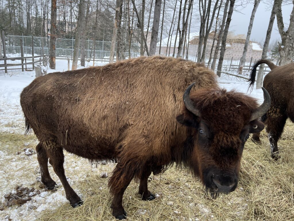 On a bien rigolé au chalet. Bruno a essayé de faire un feu. Il est meilleur à faire des câlins qu’à chauffer une maison, mais on l’aime bien quand même. Maud m’a appris à faire la cuisine, enfin, à me laisser manger ce qui traîne. Juste avant de rentrer sur Montréal, nous nous sommes quand même arrêtés pour aller chasser le bison.